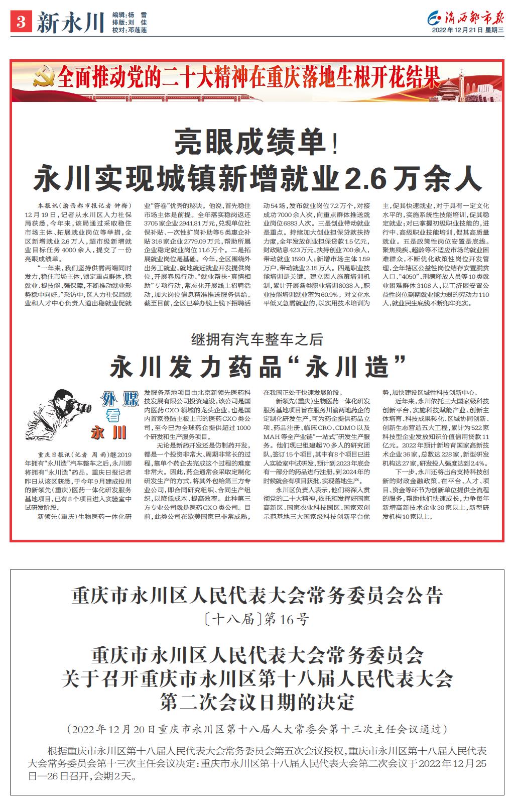 亮眼成绩单! 永川实现城镇新增就业2.6万余人