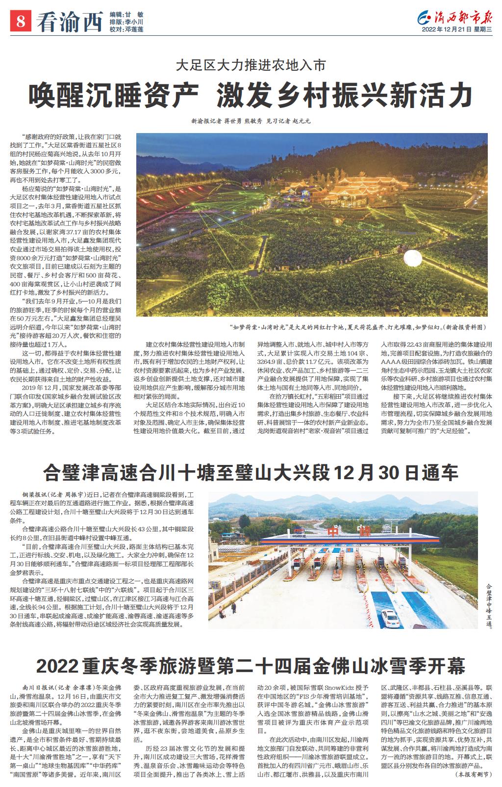 合璧津高速合川十塘至璧山大兴段12月30日通车