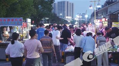 夜幕降临,凤凰湖惠民夜市更加热闹,人头攒动。