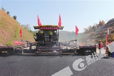 中铁五局集团重庆永璧高速公路项目路面分部负责人华登攀称,永璧高速是重庆市交通重点项目之一,项目全长25.58公里。接下来,中铁五局将以安全为前提,以质量为保障,全力以赴推进工程进度,力争明年3月底通车,相对原计划工期预计提前2个月。