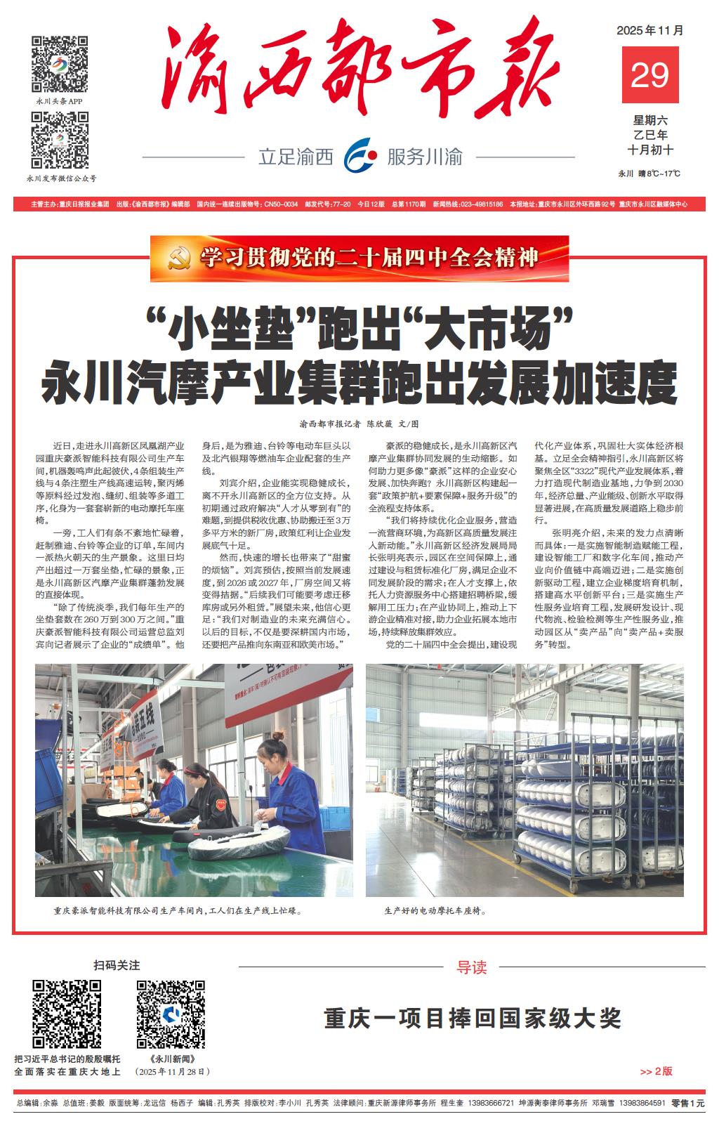 “小坐垫”跑出“大市场” 永川汽摩产业集群跑出发展加速度