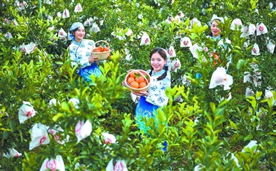 西充县东太乡鱼池寺村种植的柑橘成熟了。