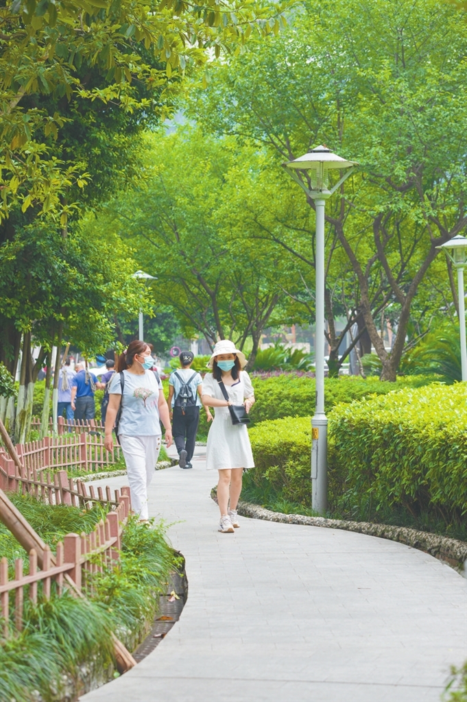 在观音桥商圈,鳞次栉比的摩天大楼中,隐藏着一座静谧的公园。这个公园就是嘉陵公园。