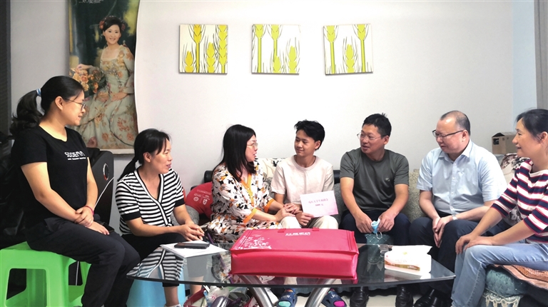图为永川区残联负责人一行看望慰问残疾准大学生龚培剑。