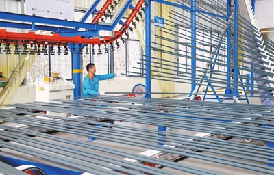 走进生产车间,机器轰鸣声此起彼伏,各条生产线有条不紊地进行铝材生产和加工。在喷涂生产线上,工人正在操作立体喷涂生产设备,车间工人告诉记者:“这是一条全自动化喷涂生产线,喷淋、风干、喷粉等环节都是机器一体化完成,减少人工的同时产量能大幅提升,我们有信心将8月积压的订单在9月生产出来。”