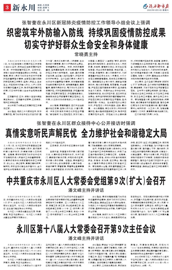张智奎在永川区新冠肺炎疫情防控工作领导小组会议上强调~~~常晓勇主持