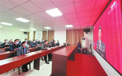 本报讯(渝西都市报记者 张 玲)10月16日上午,永川区卧龙初级中学校党总支组织学校全体党员、教师收听收看党的二十大开幕会,认真学习领会习近平总书记代表第十九届中央委员会所作的报告。