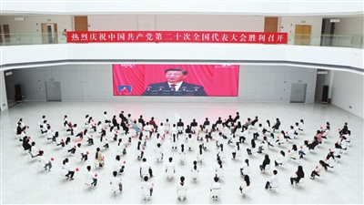 大家认为,党的二十大是在进入全面建设社会主义现代化国家新征程的关键时刻召开的一次十分重要的大会。习近平总书记所作的报告,明确宣示我们党在新征程上举什么旗、走什么路、以什么样的精神状态、朝着什么样的目标继续前进等重大问题,创造性地提出了具有全局性、战略性、前瞻性的行动纲领。报告描绘了中华民族伟大复兴的光明前景,令人欢欣鼓舞。大家表示,将继续弘扬伟大建党精神,自信自强、守正创新,踔厉奋发、勇毅前行,以更加饱满的热情投入工作中,全面贯彻党的教育方针,努力办好人民满意的教育。