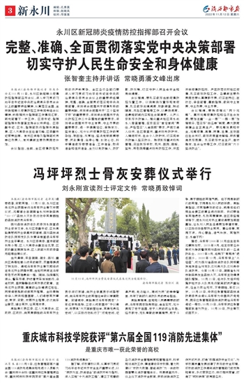 本报讯(渝西都市报记者 陈仕川 通讯员 朱睿)11月9日,应急管理部第六届全国119消防先进集体和先进个人表彰大会(重庆市分会场)在重庆市应急管理局召开,重庆城市科技学院获评“第六届全国119消防先进集体”。