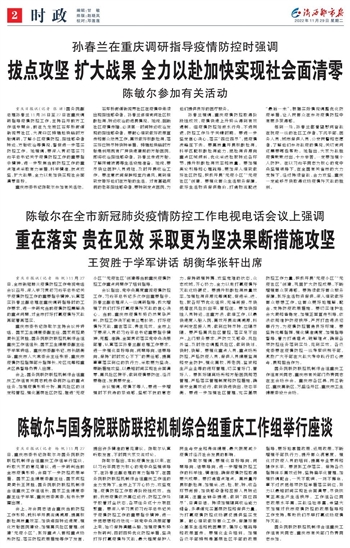 孙春兰在重庆调研指导疫情防控时强调~~~陈敏尔参加有关活动