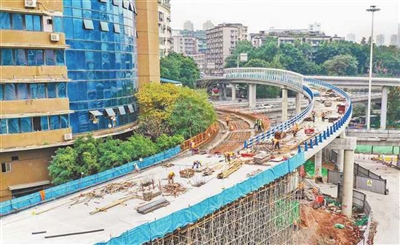 12月3日,内环快速路沙坪坝段拓宽改造工程现场,工人正在施工。截至目前,该项目的边坡挡护结构和路面工程基本完工,已完成工程总量的87%,主线力争今年底通车。