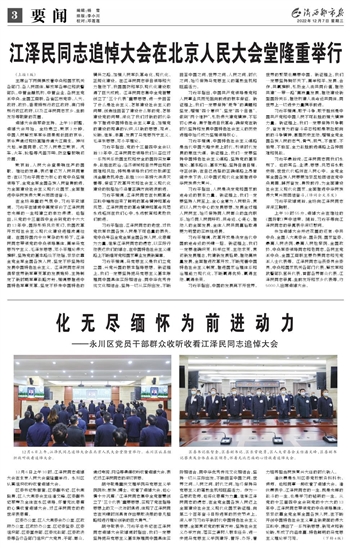 12月6日上午,江泽民同志追悼大会在北京人民大会堂隆重举行。永川区认真组织收听收看追悼大会。