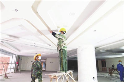 同一天,在北碚区妇幼保健院施工现场,工人们也在忙着进行室内装饰装修(小图)。该项目总建筑面积为16000平方米,包括医疗综合楼、食堂及培训中心、配套用房等。目前,项目建设已进入尾声,预计今年底建成。