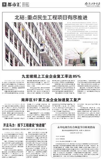~~~截至目前,江北区建筑施工项目复工复产112个,复工率达93.3%