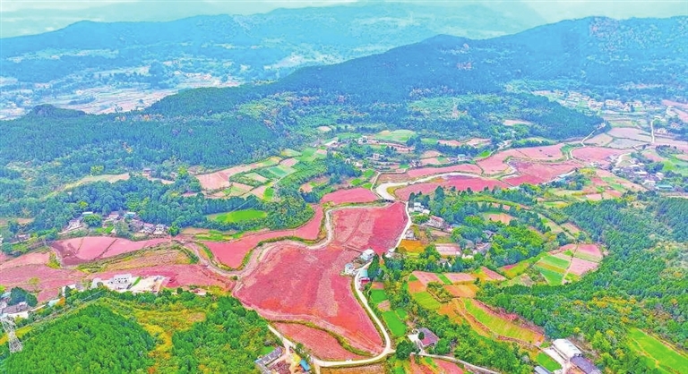 12月5日,在射洪市仁和镇广井村,改造成型的高标准农田与四面青山构成一幅美丽的乡村振兴新画卷。据悉,目前广井村已改造400多亩高标准农田,计划在明年小春种植高粱、玉米等农作物。