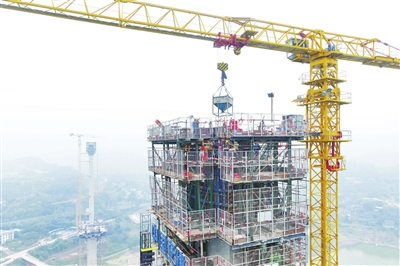 12月7日上午,渝武高速公路复线关键控制性工程——草街嘉陵江特大桥主塔封顶,为下一步主梁节段施工奠定了基础。