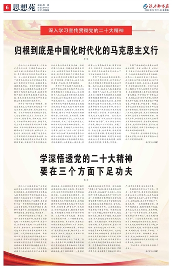 学深悟透党的二十大精神 要在三个方面下足功夫