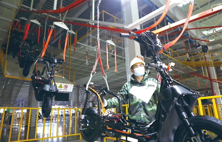 12月16日,位于永川国家高新区凤凰湖产业园的雅迪科技集团有限公司,员工们在生产线上忙碌地生产电动摩托车、电动轻便摩托车、电动自行车等车型。