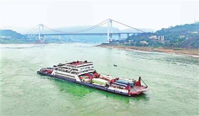 ▲2月19日,一艘载着大型货车的滚装物流船正驶出郭家沱滚装码头,开往长江下游城市。据了解,开春以来,各大企业开足马力赶订单,长江航运货运量大增,我市滚装和散货码头也呈现一派繁忙景象。 重庆日报特约摄影 钟志兵/视觉重庆据《重庆日报》