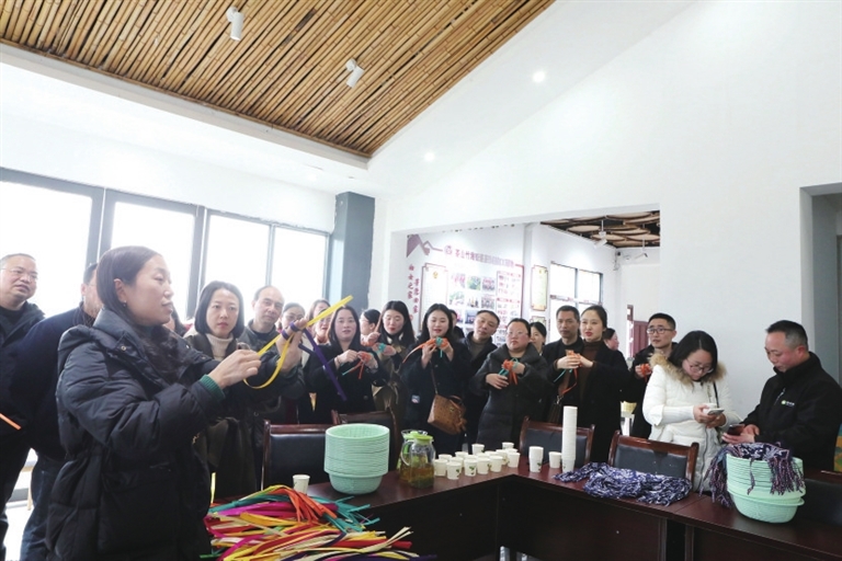 2月24日,永川区茶山竹海街道茶竹村,来自重庆及永川等地的20多所小学、幼儿园负责人在村办公室参观茶、竹产业发展情况,学编织,并到茶园基地体验采茶,到茶山竹海黛子山游乐园参观考察等。