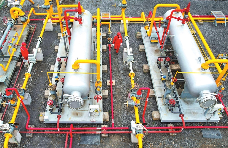 “丁页12—1HF井口来气经过工业区处理,达到LNG撬装区块,进行液化外输,日产天然气4万立方米左右,累计产气83万立方米,可供166万户普通家庭日常用气。”中国石化西南油气分公司页岩气项目部地面工程室副主任曾洋介绍,接下来,公司将在该平台再部署一口井,若达到预期效果,将对平台进行整体开发,预计部署8至10口井。