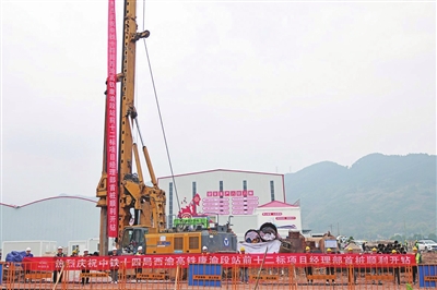 ▲西渝高铁康渝段站前十二标项目首根桩基开钻。