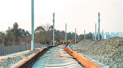 在成自宜铁路建设现场,建设者们正在进行着铺轨、四电、站房的最后冲刺阶段建设。据介绍,成自宜高铁即将在今年建成通车,成达万高铁、西(宁)成(都)铁路建设进入全面施工阶段。