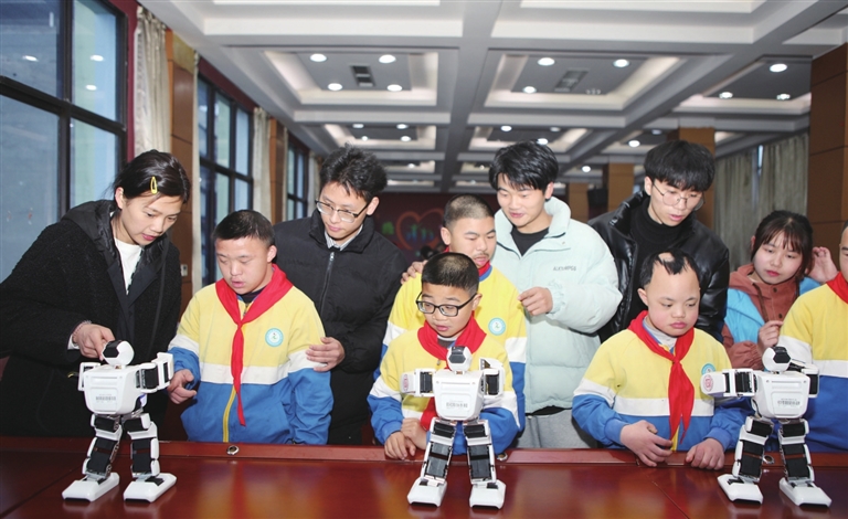 深化服务活动,夯实阵地建设。学校以服务群众工作为主线,搭建各类实践阵地,如在永川区特殊教育学校建立实践基地;在永川区朱沱镇参与河道治理改善生态环境;将永川图书馆作为党的二十大精神宣讲的重要阵地;在永川区陈食街道继续助力乡村振兴。年平均有志愿者队伍10支、志愿者300人,为青年大学生提供了实践锻炼的舞台,助力学生成长成才,服务群众急难愁盼。在第60个“全国学雷锋纪念日”即将到来之际,师生志愿者来到永川区特殊教育学校,开展主题为“大手牵小手,学雷锋树新风”的志愿服务活动。