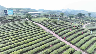 本报讯(渝西都市报记者 陈仕川 文/图)3月5日,永川区大安街道花果山上的重庆玉琳茶业有限公司茶叶基地满山翠绿,茶田层层叠叠,茶树新芽勃发。采茶工人在茶田间穿梭采摘,四处洋溢着春茶收获的喜悦。