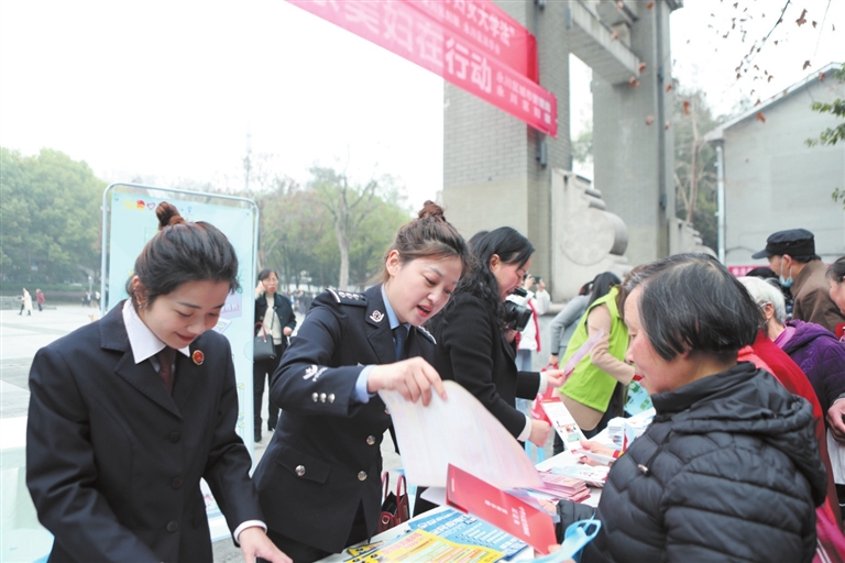 3月3日,永川区2023年“建设法治中国,巾帼在行动——千万妇女大学法”集中宣传活动在文曲广场举行。永川区委政法委、区法院、区检察院、区公安局、区行政服务中心、区妇联等部门工作人员,向过往群众宣传了《民法典》《妇女权益保障法》等与妇女儿童权益密切相关的法律法规。