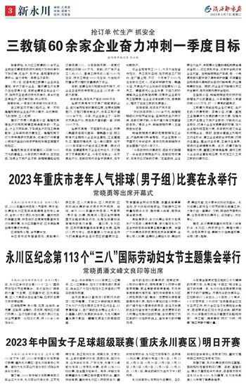 永川区纪念第113个“三八”国际劳动妇女节主题集会举行