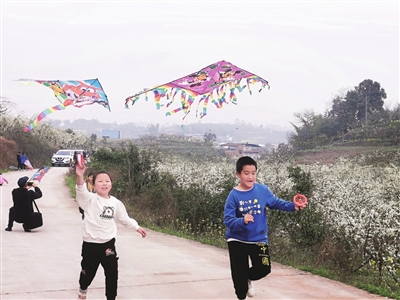 近日,永川区何埂镇联盟村近千亩连片的李花如雪般绽放,引来小孩嬉戏玩耍,快乐无边。 渝西都市报记者 凌泽英 摄