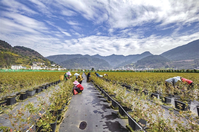 近年来,南川区在兴隆、大观、河图、木凉、南平等乡镇种植蓝莓万余亩,形成集种苗繁育、基地种植、采摘销售、科技创新、产品研发、乡村旅游为一体的现代农旅融合示范基地,使之成为壮大村集体经济、促进农户增收的又一致富产业。