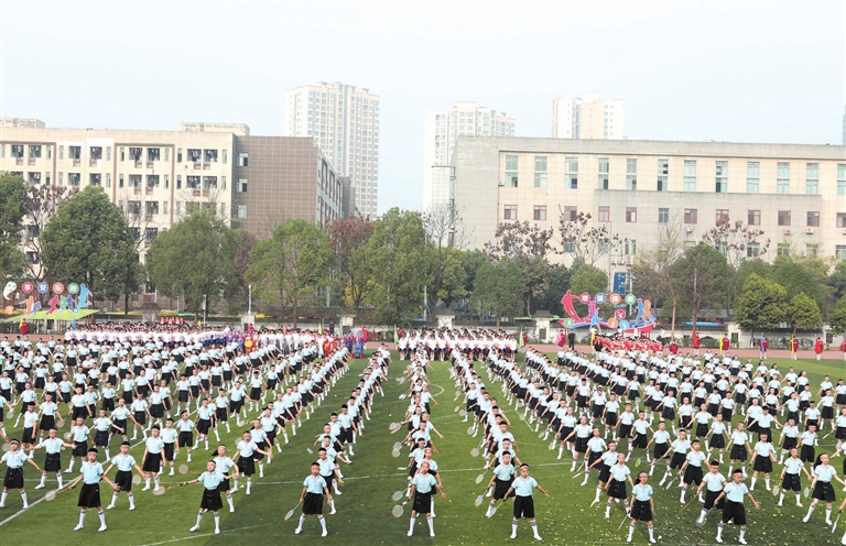 本报讯(渝西都市报记者 张 玲 通讯员 宋世海 刘 畅/文 陈仕川/图)举办田径运动会、开展艺体节目表演、大课间活动和社团活动展示……3月9日,一场以“阳光向未来”为主题,由川渝两地的永川、泸州倾情“烹制”的中小学体育文化盛宴在永川区华丽呈现。