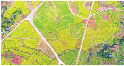 ①图为仙龙镇万亩油菜花基地。