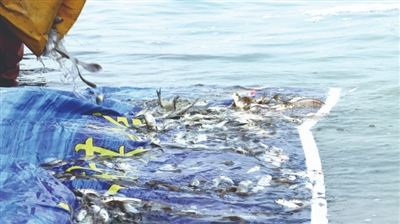 活动现场,工作人员将一桶桶活蹦乱跳的鱼苗有序投放,74万尾鱼苗游进长江,现场发出阵阵欢呼声。