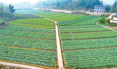 3月15日,璧山区七塘镇蔬菜基地,高标准农田整齐划一。
