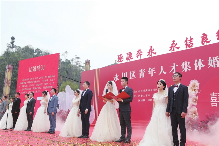 “这次集体婚礼很有意义,也弥补了我们的遗憾,爱不会缺席,只会延续。”叶冬芳说,他们夫妇俩十分感谢永川对青年人才的重视,不仅打造良好的工作生活环境,还考虑年轻人的终生幸福,永川是一座极具幸福感又开放包容的城市。他们夫妇俩将紧密携手,在以后的学习、工作、生活中,与永川这座城市连在一起,为永川的建设添砖加瓦,奋力前行。