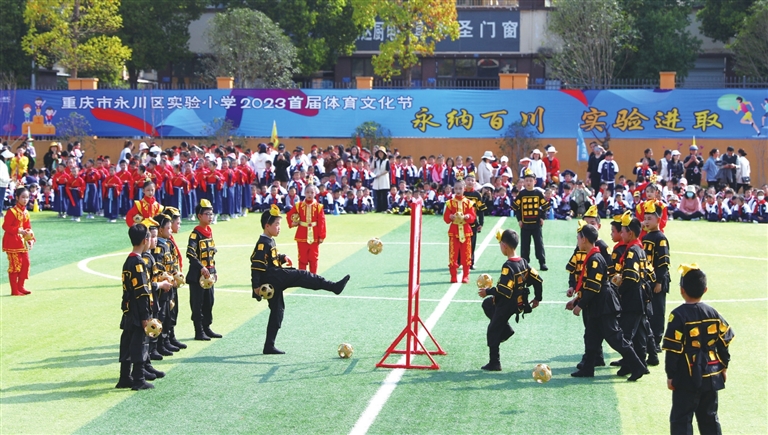 在当代,一谈到体育,人们就会想到跑步、篮球、乒乓球等项目,而近日在永川区实验小学举办的首届体育文化节上,学生们却“穿越”回古代,展示了秦朝的射箭、唐朝的蹴鞠、宋朝的投壶等中国从古至今不同朝代的体育特色项目文化。
