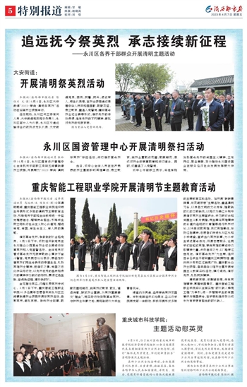 本报讯(渝西都市报通讯员 张林锋)4月4日,永川区国有资产管理中心全体机关干部职工来到五间镇新建烈士陵园,开展题为“2023·崇尚·清明祭英烈”祭扫活动,深切缅怀革命烈士。
