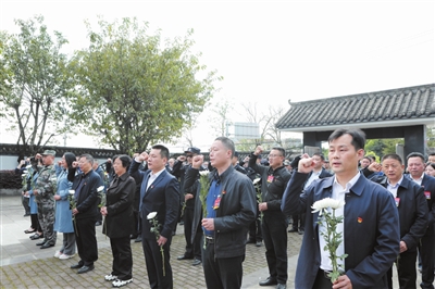 本报讯(渝西都市报记者 陈仕川 文/图)4月4日,永川区大安街道“2023·崇尚·清明祭英烈”活动在石庙烈士陵园举行。
