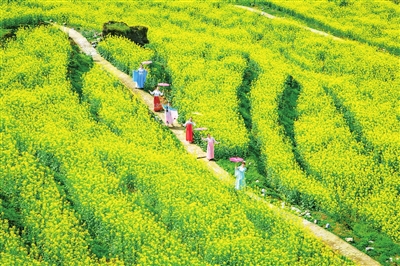 万盛日报讯(记者 叶 露)眼下,万盛经开区石林镇庙坝村50亩油菜花进入盛放期,清风拂过春天的田野,花香氤氲。