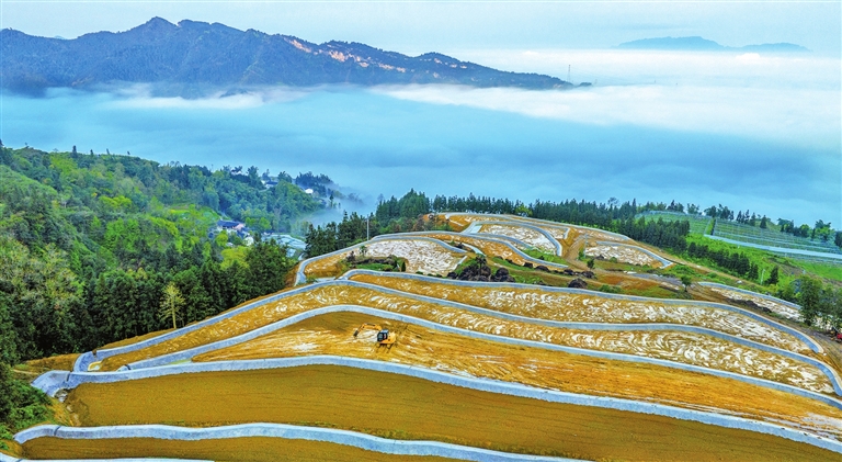 近日,万盛经开区黑山镇南门村,村民在硬化田埂、开挖鱼坑,建设稻田养鱼基地。