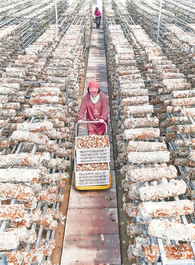 去年以来,武胜县以四川芝皇农业开发公司为龙头,从农户手中收购废弃桑树枝条加工制成菌棒,通过向村级集体和农户统一供应成熟菌棒、统一技术服务、统一收购食用菌的模式,带动村集体和农户规模发展桑枝食用菌,形成“叶养蚕”“枝生菌”“渣做肥”“肥育桑”的高效闭合生态产业链。目前,该县可年产菌棒2000万棒以上,带动2000多户农民创业增收。