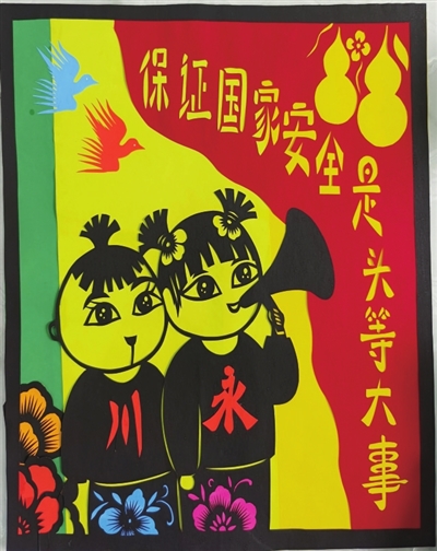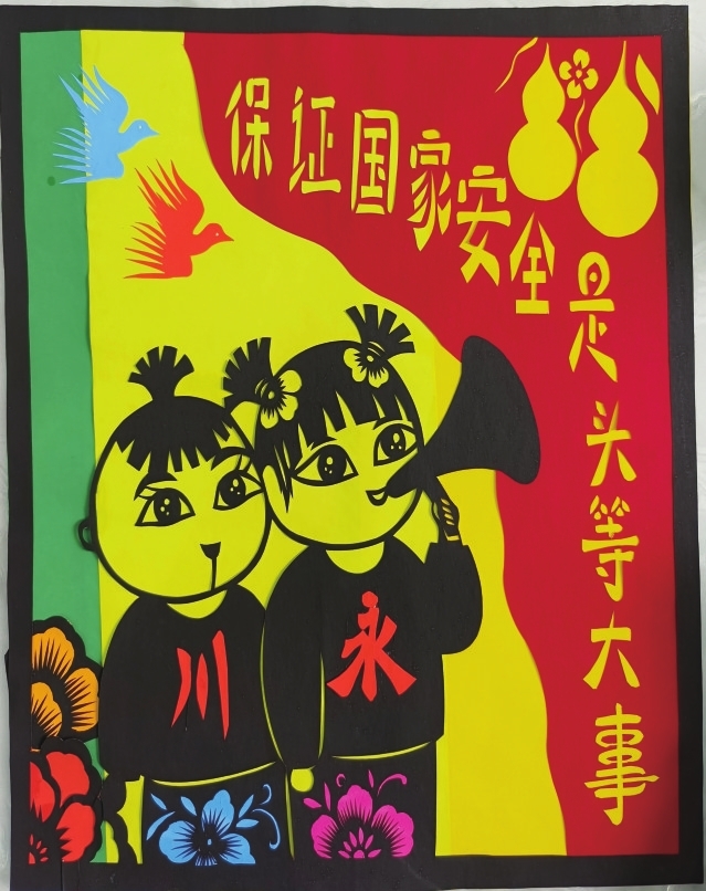 本报讯(渝西都市报记者 徐灵)4月12日,3张照片在永川人的朋友圈中刷屏,照片拍摄的是小小的剪纸上,两个穿着永川字样衣服的小孩拿着喇叭宣传国家安全教育的画面,这是永川区第一批传统美术类非物质文化遗产项目代表性传承人、艺香剪纸创始人唐礼茂创作的宣传国家安全教育系列剪纸。