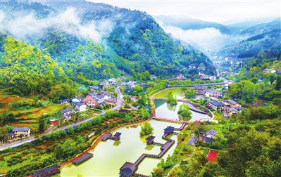 近日,万盛经开区关坝镇凉风村绿意盎然,鱼塘、远山、农家与晨雾相映,展现出一幅和美生态画。