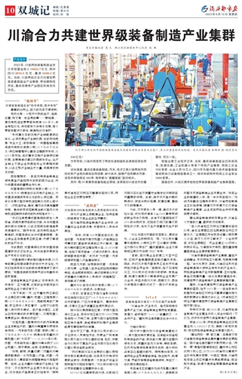 四川作为国内动力设备制造基地之一,其大型发电成套设备、石油钻采设备和核电装备的产能、研发能力等,都处在国内领先水平;而重庆在风力发电、单轨车辆、垃圾焚烧等领域具有技术优势,细分市场占有率位居国内前列。特别是近年来,川渝两地企业聚焦智能装备、航空航天、轨道交通、节能环保等装备制造领域,走出了一条协同发展的路子。