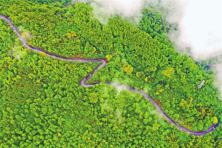 9月12日,万盛经开区万东镇方家山云雾缭绕、满山苍翠,乡村公路沿着山峦蜿蜒盘旋,好一幅乡村生态美景画卷。