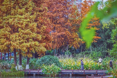 近段时间,永川兴龙湖公园的水杉,慢慢换上了火红的外套,人民大道路两旁的银杏树已披上“黄金衣”,胜利路的梧桐树换上金灿灿的冬外套……城区里,银杏的黄和落羽杉的红,层层叠叠,处处绚烂,冬日的永川,被“美拉德”色系包裹,美得像一幅画。