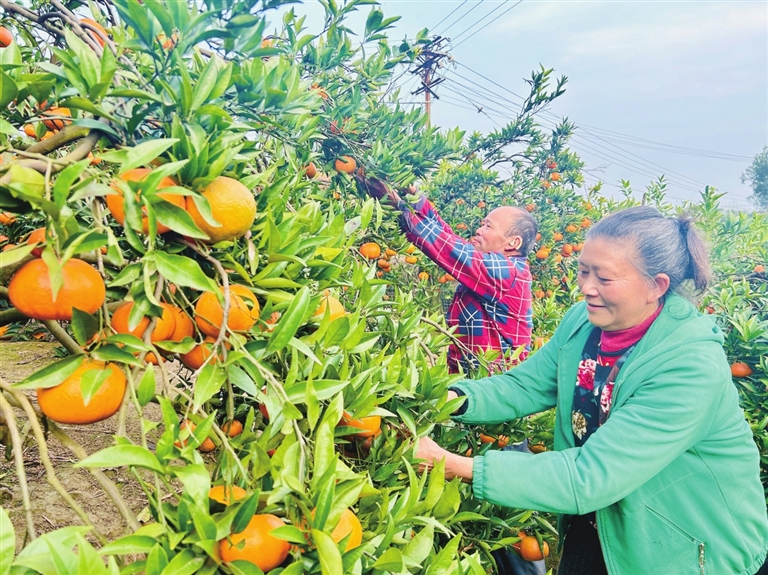 眼下,正是柑橘大量成熟季节。走进果林,空气里弥漫着柑橘的清香,黄澄澄的柑橘压弯枝头,丰收的景象甚是喜人。